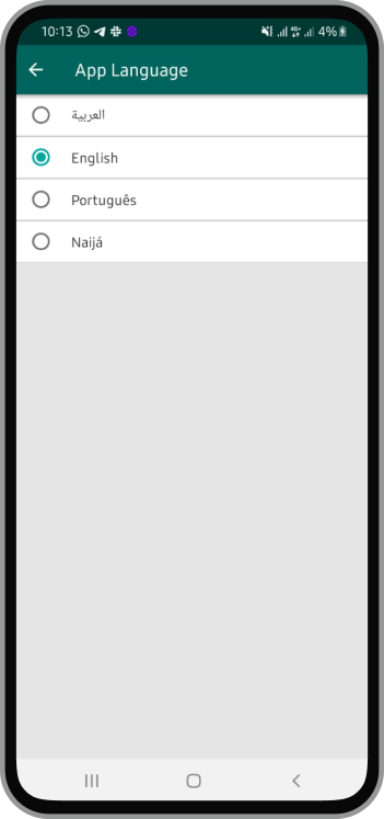 Once a user clicks on App language, It takes them to the Language options
